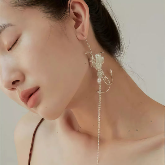 Sculptural Lily Pearl Drop Earrings