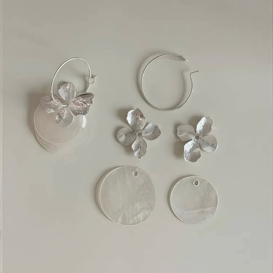 Eternal Bloom Multi-Wear Earrings – Sculptural Silver & Mother-of-Pearl