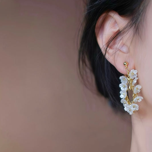 Cherry Blossom Rain Earrings – Convertible Floral Hoops & Mother-of-Pearl (2-in-1 Style)