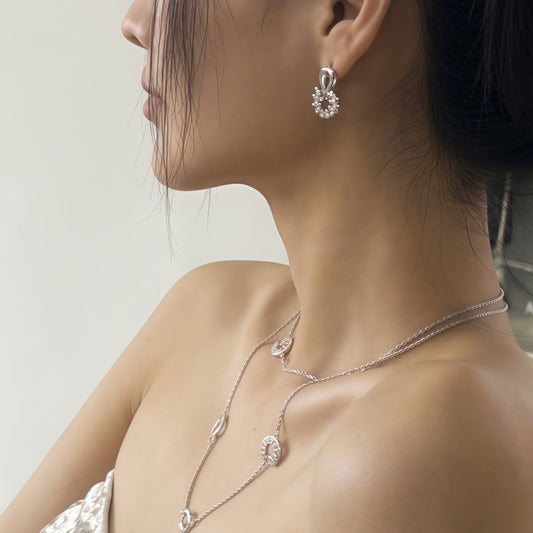 Silver Ribbon Lace Skirt Earrings (2-in-1 Style)
