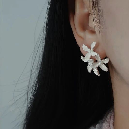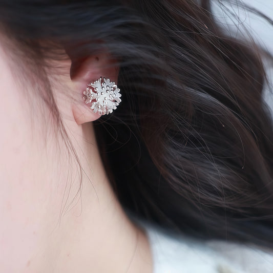 Frosted Bloom Earrings — Sculptural Silver Floral Studs