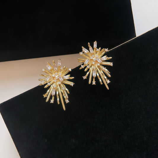 Radiant Firework Earrings — Golden Light in Motion