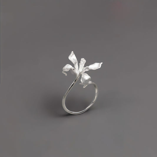 Iris Whisper Silver Ring – Handcrafted Statement Flower Ring