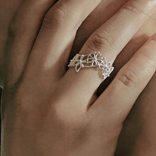 Floral Lace Silver Ring – Surrounded by Blossoms Every Day