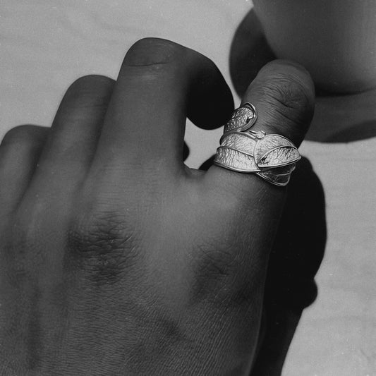 Hviskende blade ring – Statement smykker i sterlingsølv