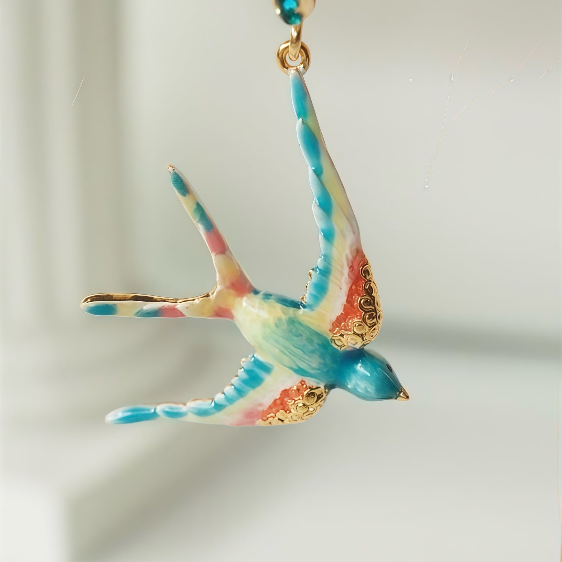 - Håndemaljeret svalevedhæng med forgyldte detaljer