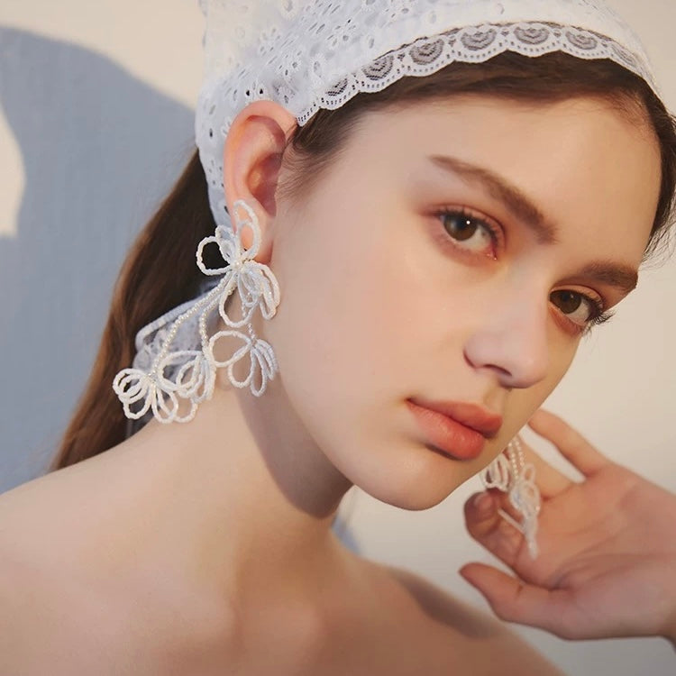 Perfect for both special occasions and everyday sophistication, these earrings bring a touch of romantic femininity and wearable art to any look. Their luminous white tone makes them an ideal choice for weddings, garden parties, or simply elevating your daily style.