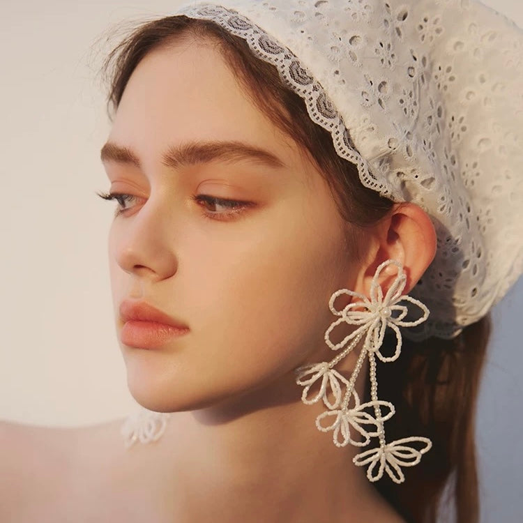 Beaded Blossom Cascade Earrings – Ethereal Statement Jewelry