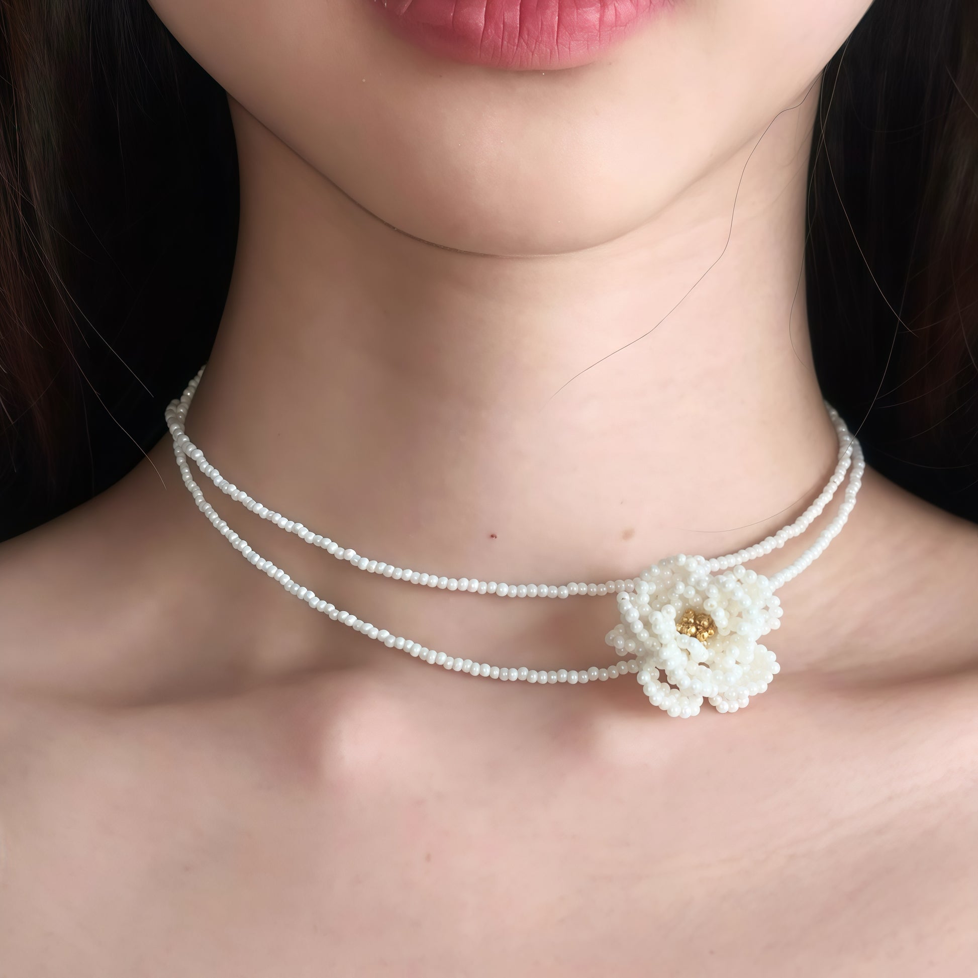 Versatile and enchanting, this delicate beaded flower piece can be worn as a necklace, a choker, or wrapped around the wrist as a bracelet. The central floral motif adds a dreamy charm, while the fine beadwork gives it a soft, feminine finish. A perfect choice for those who love multifunctional jewelry that blends elegance with creativity.