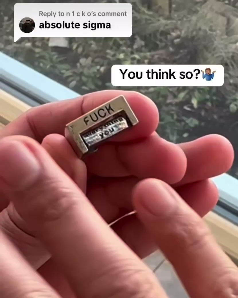 Turn your feelings into fashion with our Bold Statement Adjustable Spinner Ring – the perfect mix of edgy attitude and playful design. Crafted from high-quality stainless steel, this unisex statement ring features a rotating inner band engraved with multiple bold phrases, letting you switch between messages like “F* Lies”, “F* Everything”, “F* Me”, “F* You”, and more with a simple spin.