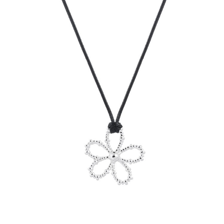Embrace effortless elegance with the Dewdrop Blossom Silver Pendant Necklace, a delicate piece designed to bring a touch of nature’s poetry into your everyday style. The pendant features a five-petal flower silhouette, crafted from polished silver beads that catch the light like morning dew.