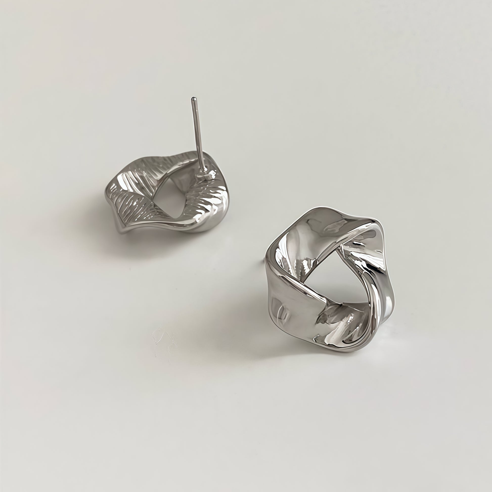Sculptural yet subtle, the Ethereal Twist Stud Earrings are the embodiment of modern minimalism. Their softly folded, Mobius‑inspired silhouette catches the light from every angle, creating a fluid play of shadows and sheen. Crafted with a smooth matte‑gold finish, polished silver finish and textured rose gold finish, these earrings add a touch of quiet luxury to your everyday style.