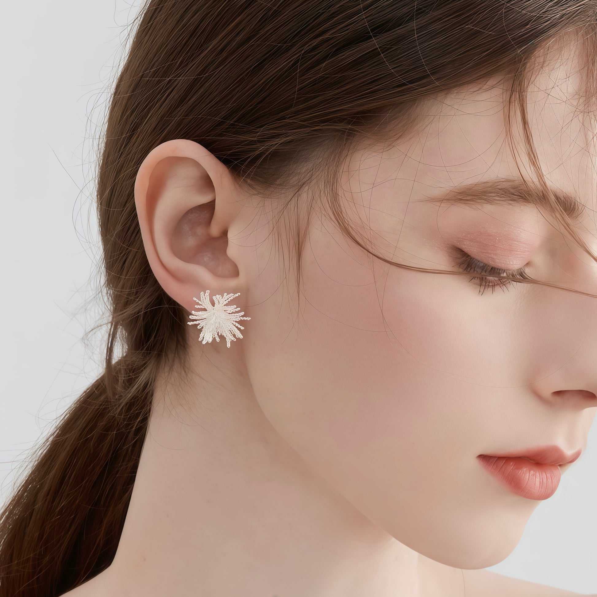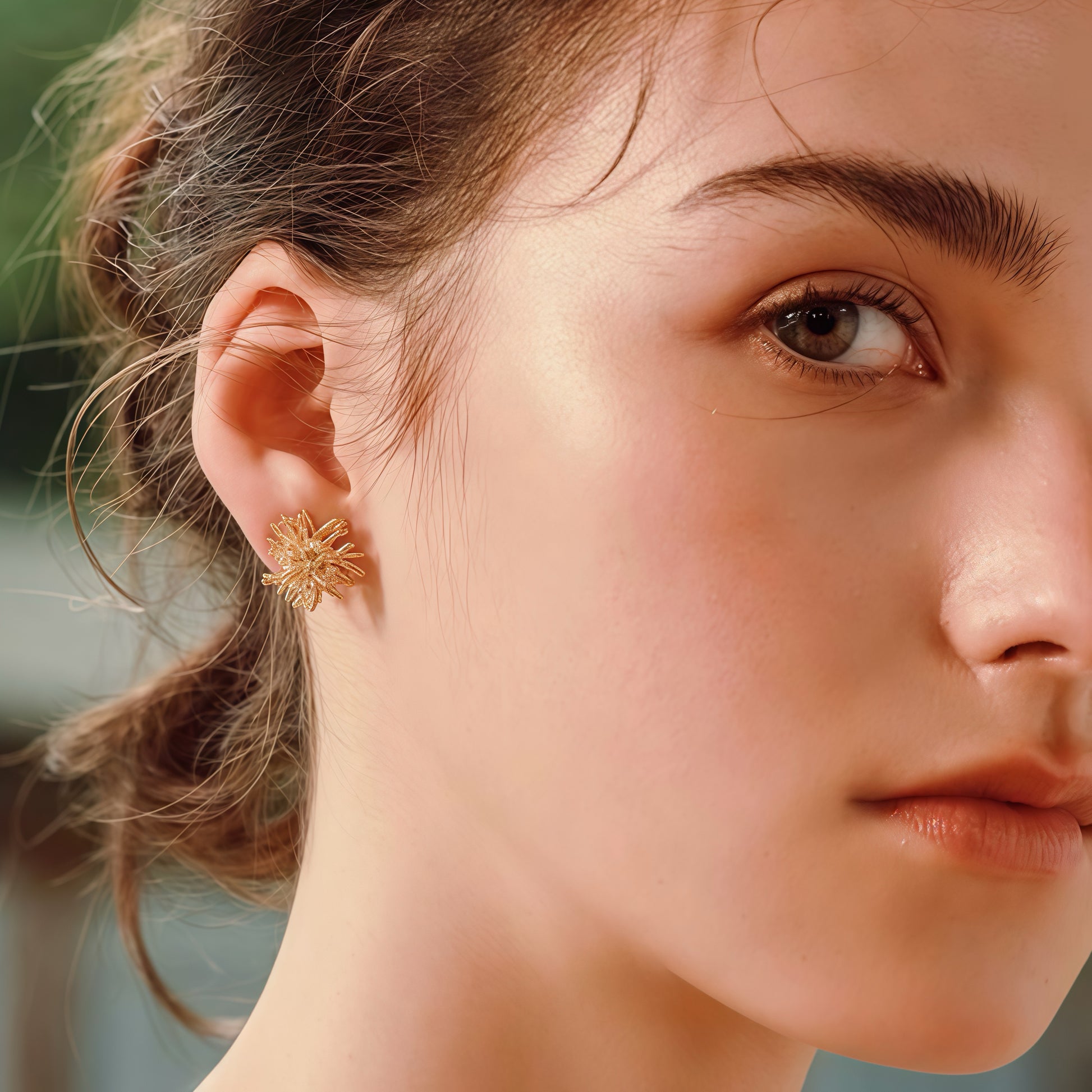 Available in 14K gold plating and 925 sterling silver, these statement studs combine bold artistry with timeless elegance. Their three-dimensional, textured form ensures they catch the light beautifully, making them the perfect piece to elevate both everyday outfits and evening wear.