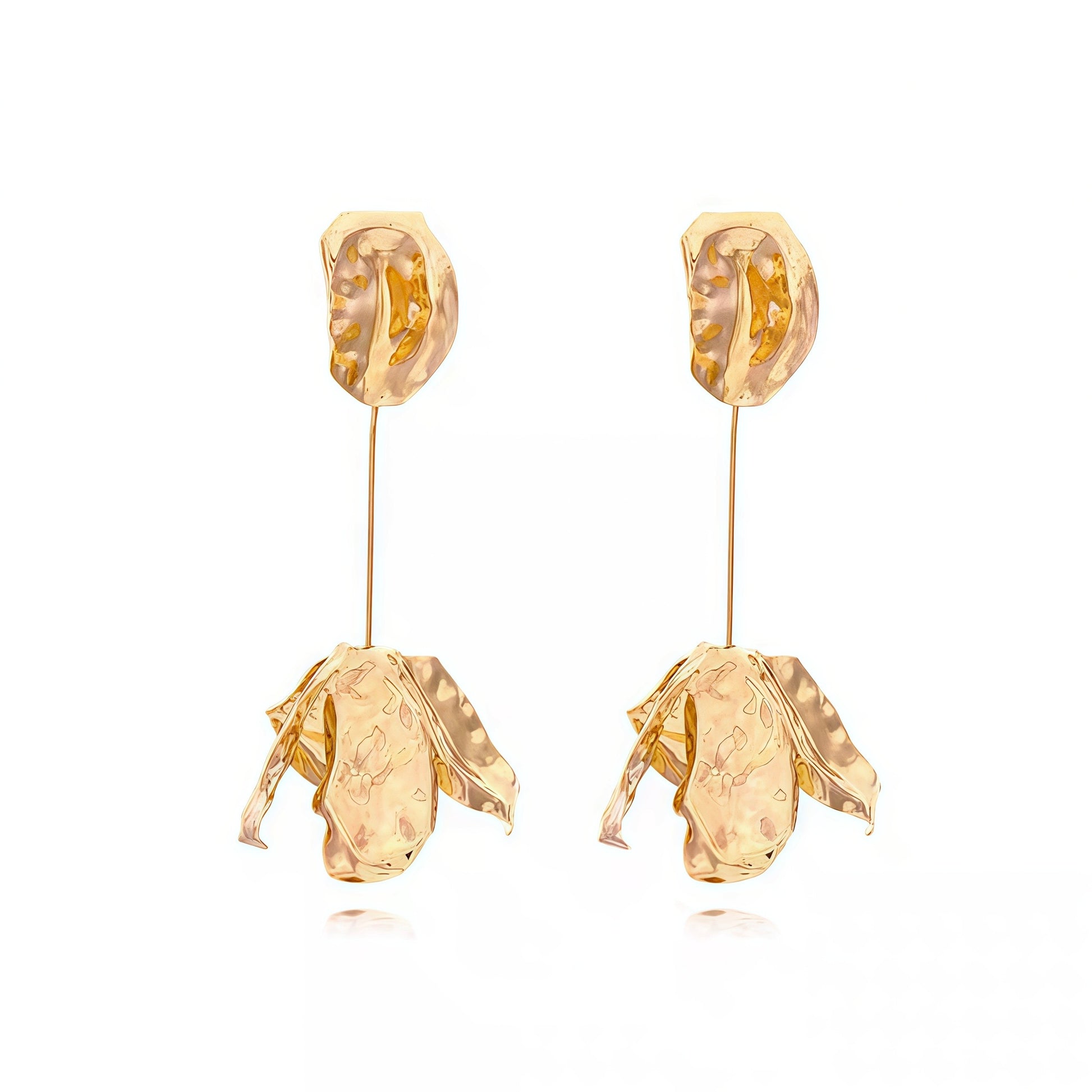 Golden Petal Drop Earrings – Sculptural Floral Statement