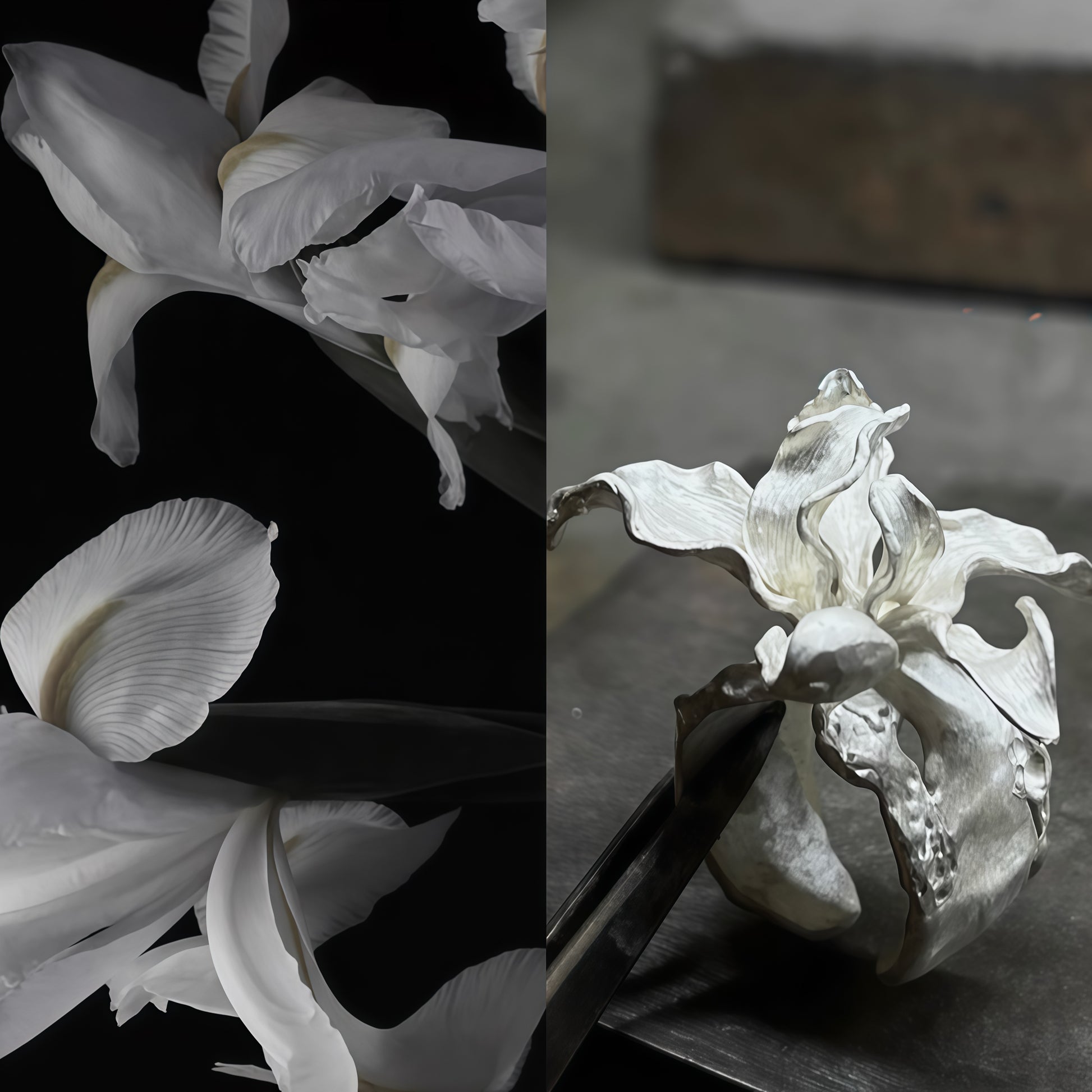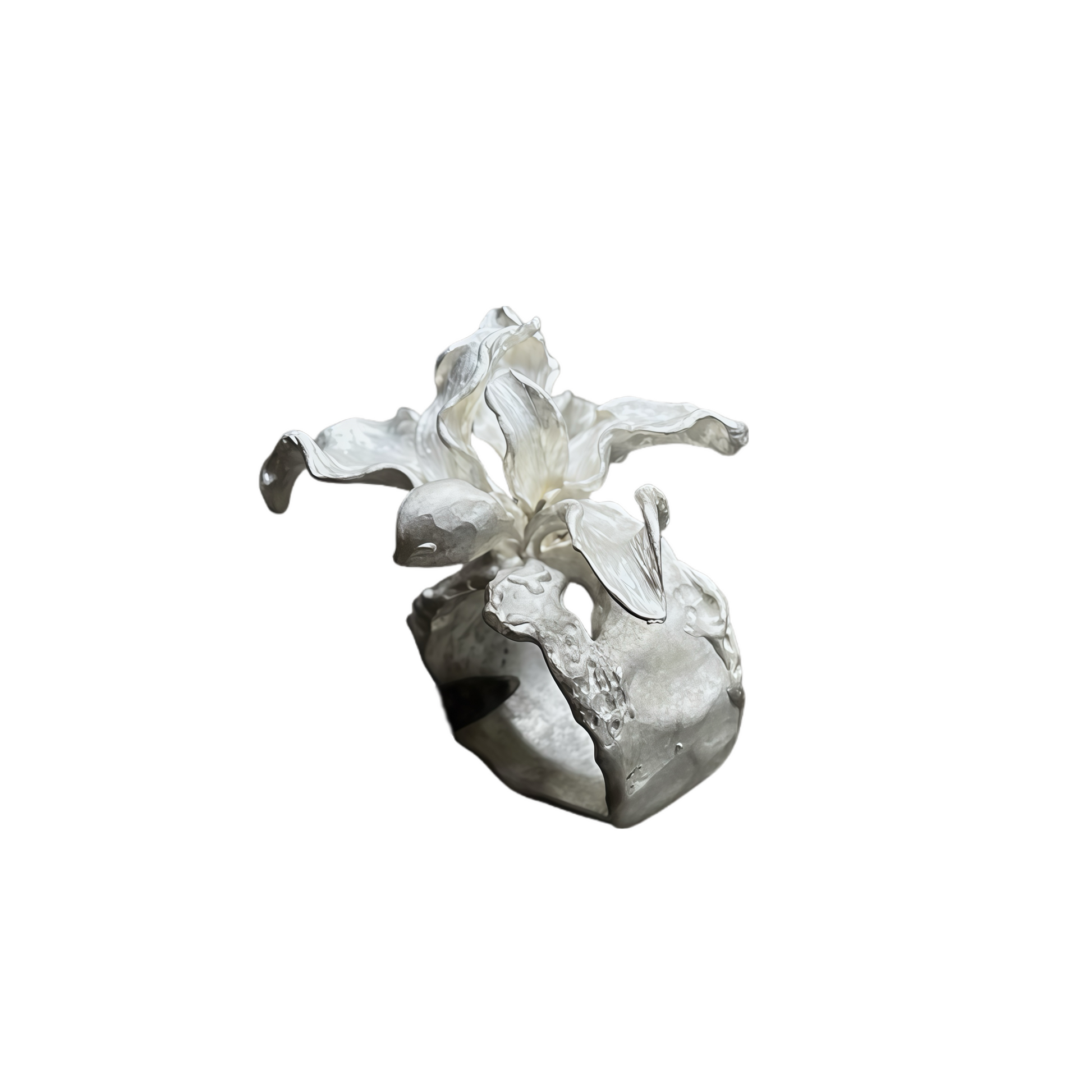 Unveil the poetry of nature with the Iris Whisper Silver Ring, an artisan-crafted sterling silver statement ring inspired by the graceful curves of the iris flower. Each petal is sculpted by hand, creating a unique floral ring where no two pieces are ever identical — making every ring a true wearable art jewelry piece.