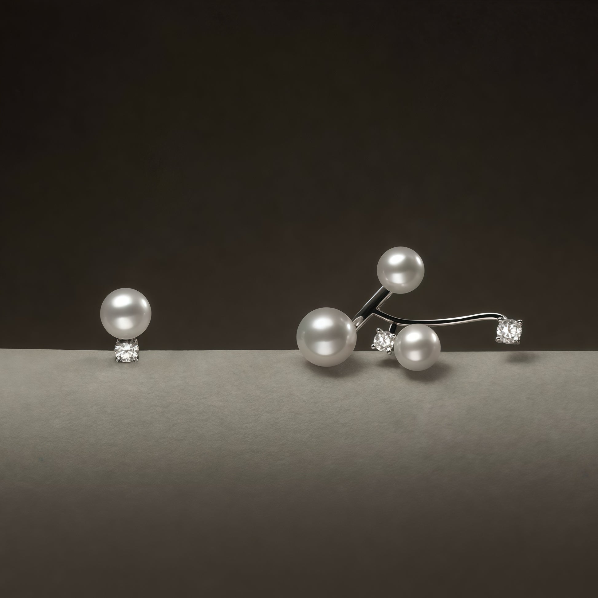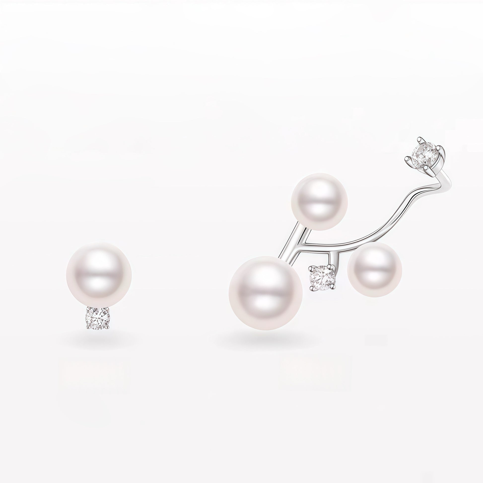 - Three luminous pearls in harmonious sizes, paired with sparkling zircon stones