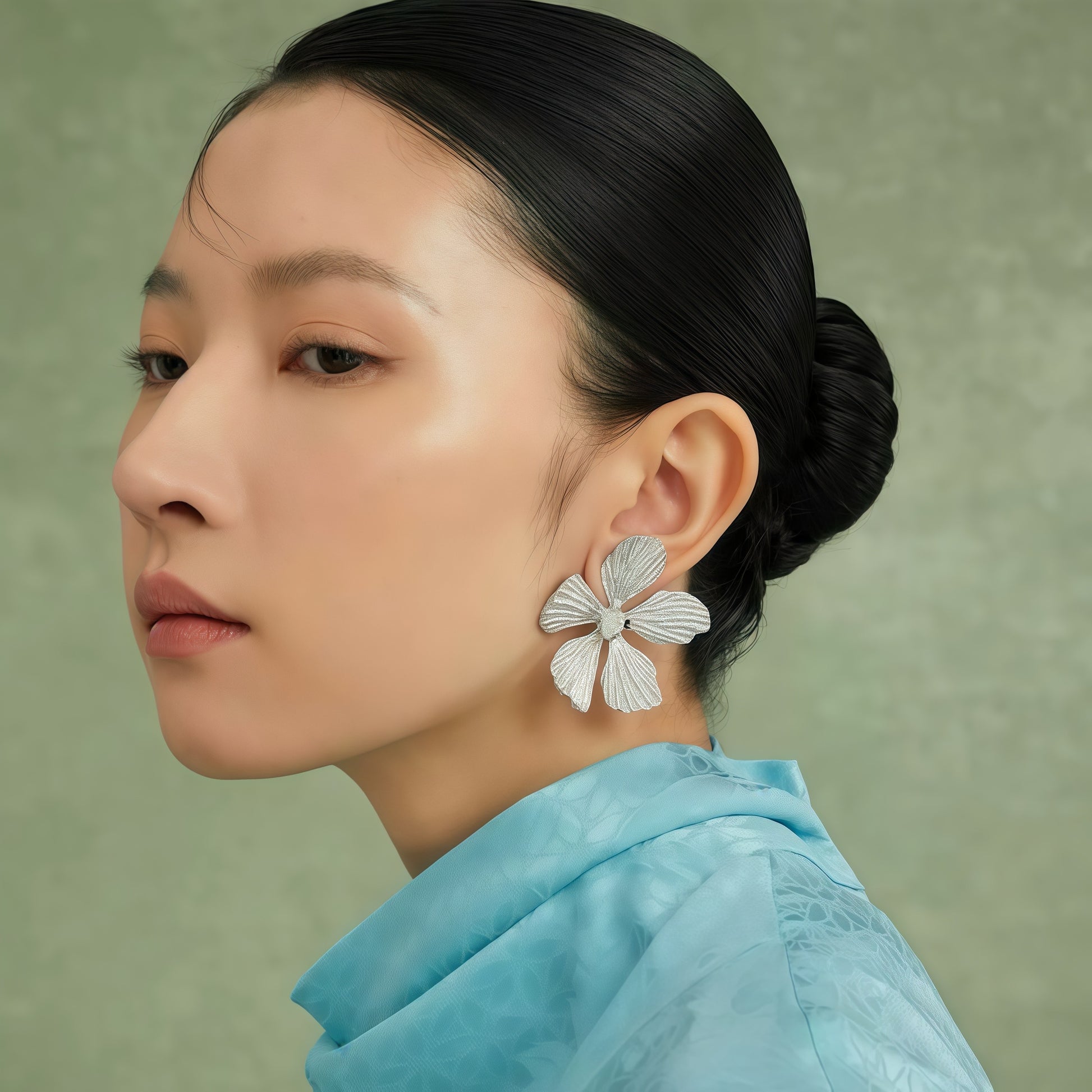 Crafted in radiant gold- and silver-tone metal with high-texture detailing, each petal captures and reflects light with organic movement. Lightweight yet statement-making, they’re perfect for turning heads — from art openings to seaside dinners.