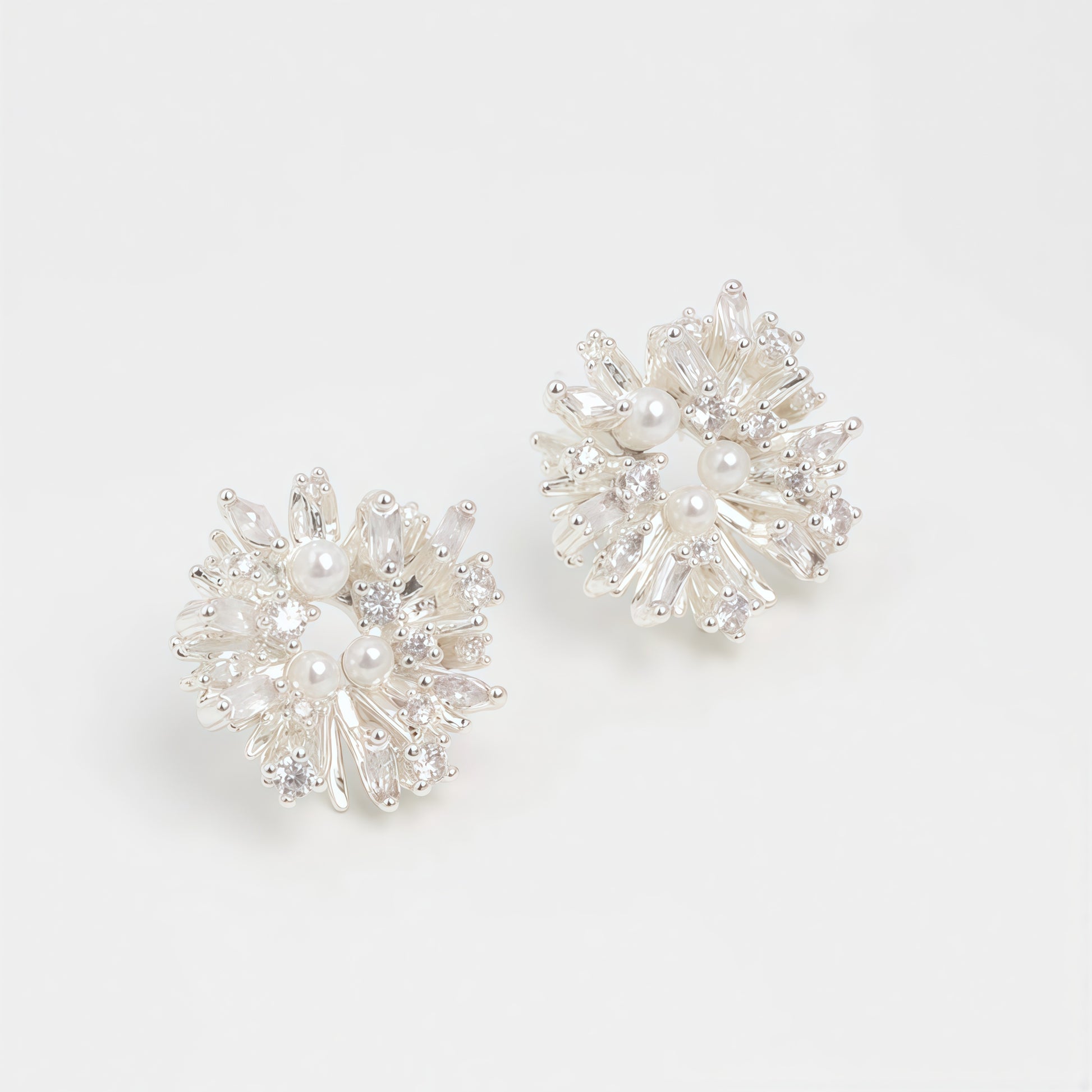 Like a burst of light against the night sky, these Snowflake Pearl Earrings capture the beauty of moments that shine brightest. Each piece is designed with clusters of luminous pearls and radiant crystals, forming a circle that symbolizes wholeness, renewal, and infinite possibility.