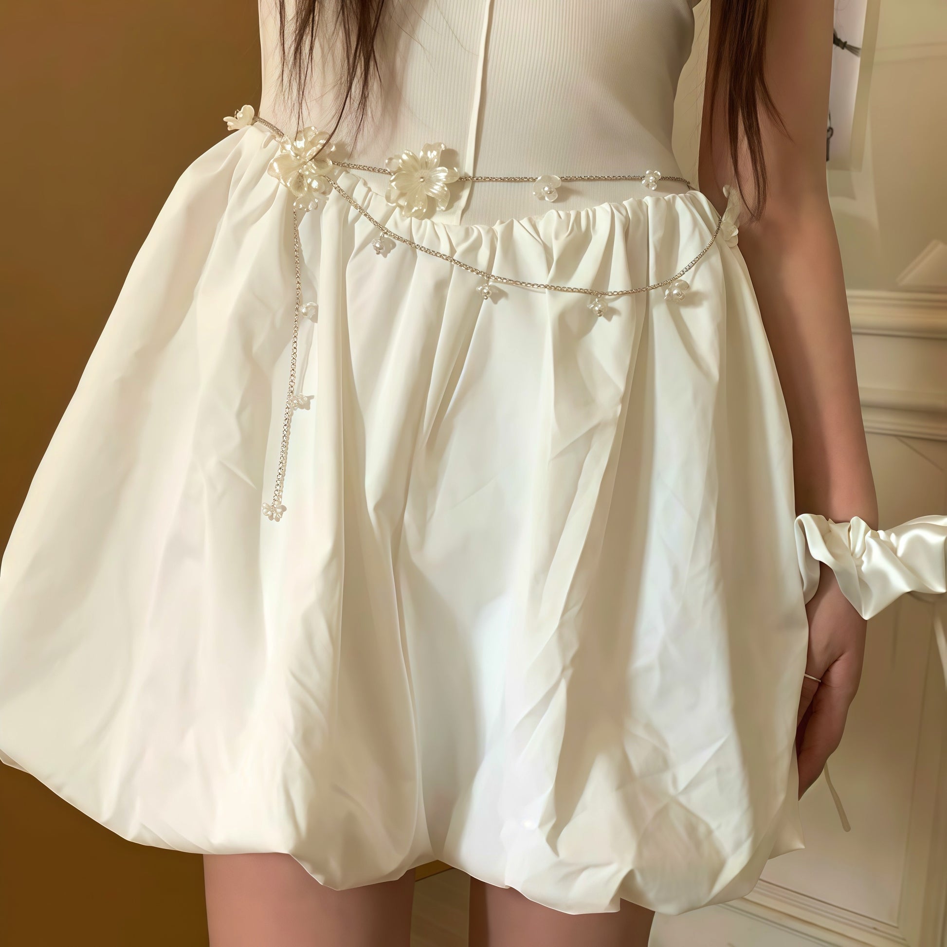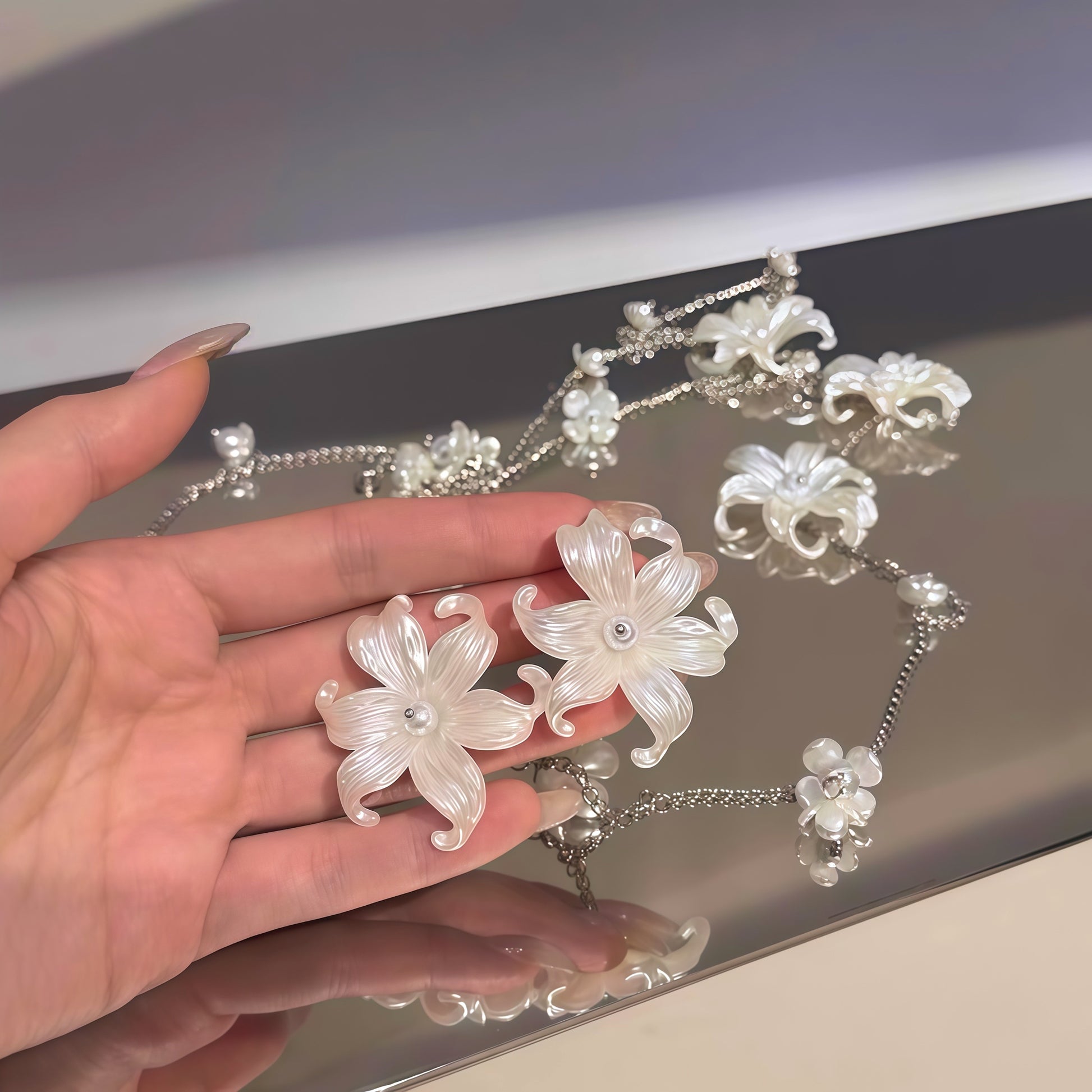 Wear it draped around your neckline for a sophisticated floral statement necklace, style it as a body chain over dresses for ethereal charm, or wrap it around your waist as a pearl flower belt to accentuate your silhouette. Perfect for weddings, garden parties, and everyday artful dressing, this piece embodies wearable art jewelry that feels both timeless and poetic.
