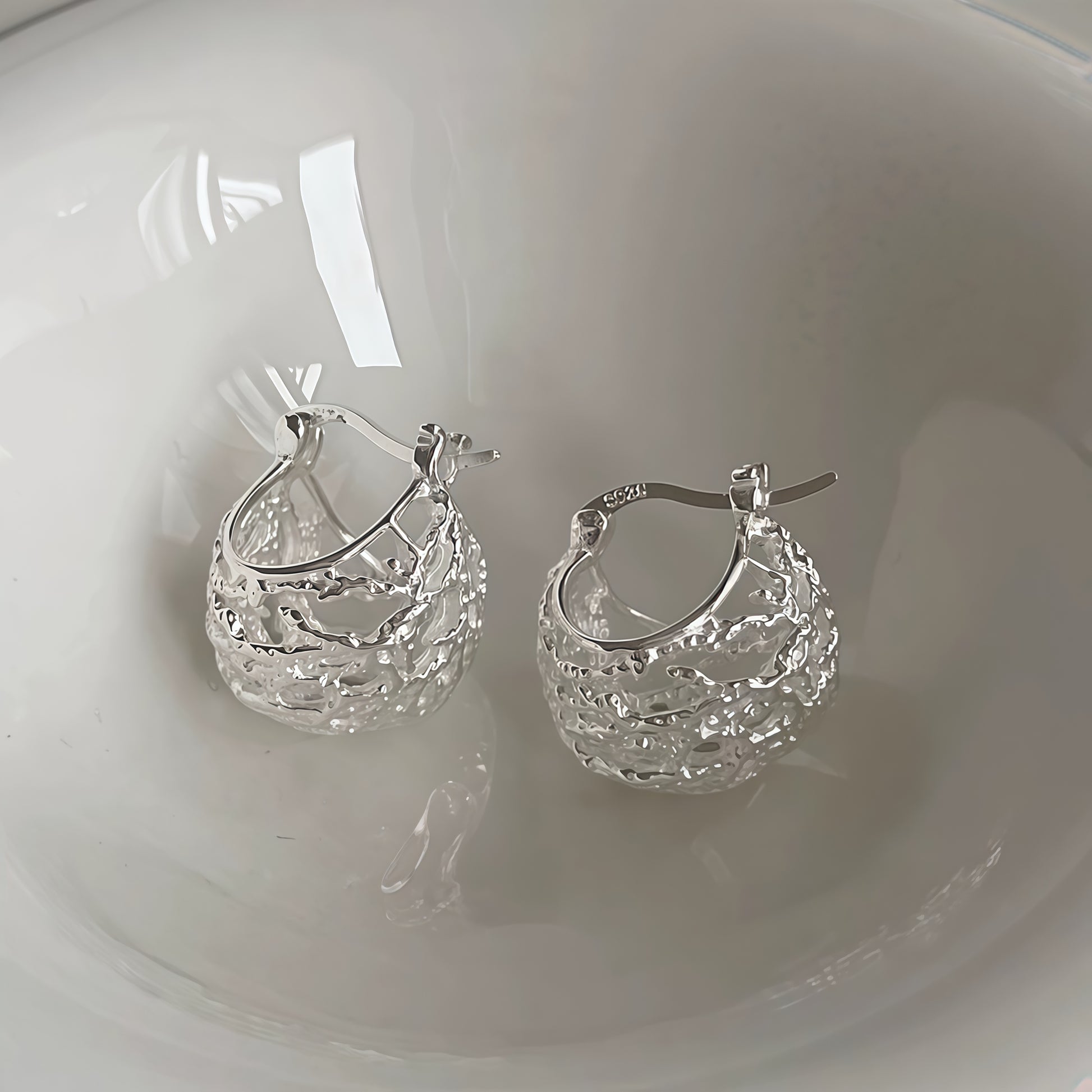 Available in both radiant gold and luminous silver, their lightweight hollow design gives volume without weight — making them perfect for all-day wear. The intricate texture and shadow play create a sense of movement and artistry, ideal for those who love poetic, modern jewelry with a story to tell.