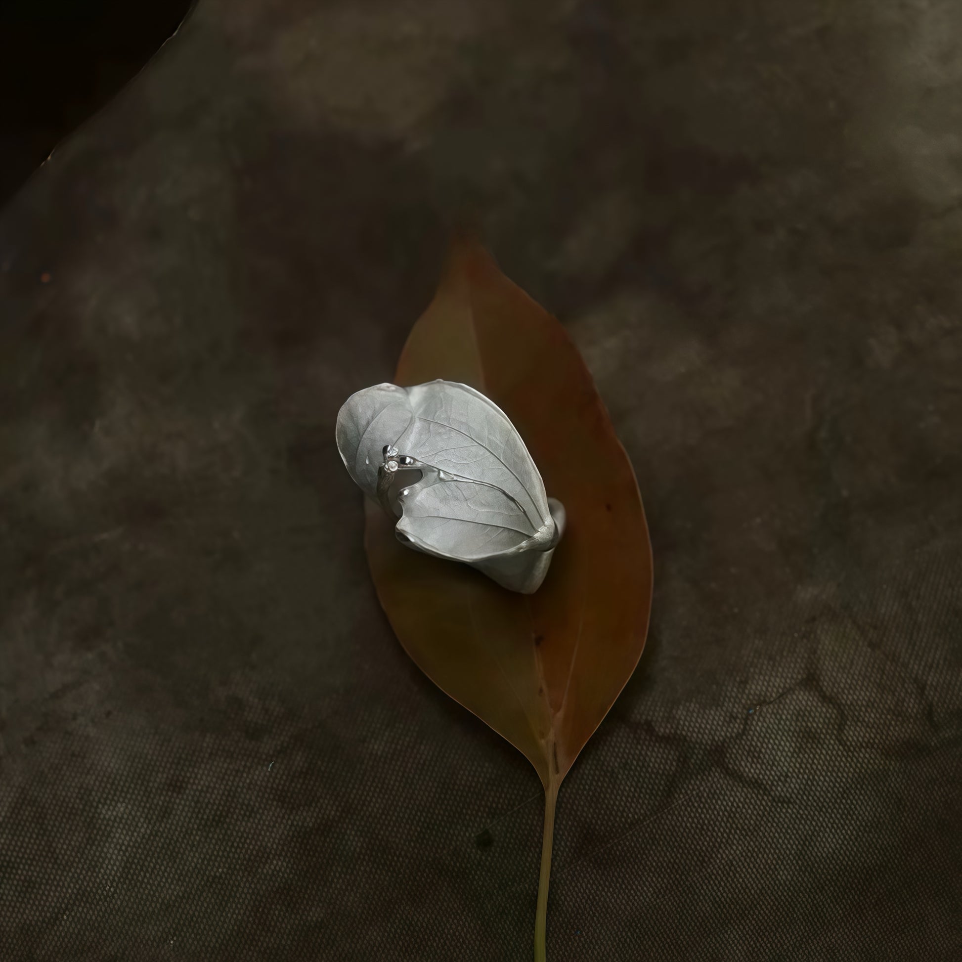 A sculptural ode to nature’s quiet resilience. The Whispering Leaves Ring unfolds like a cluster of silver leaves gently wrapping around the finger — each vein delicately engraved, each curve echoing the stillness and strength of life’s natural rhythm.