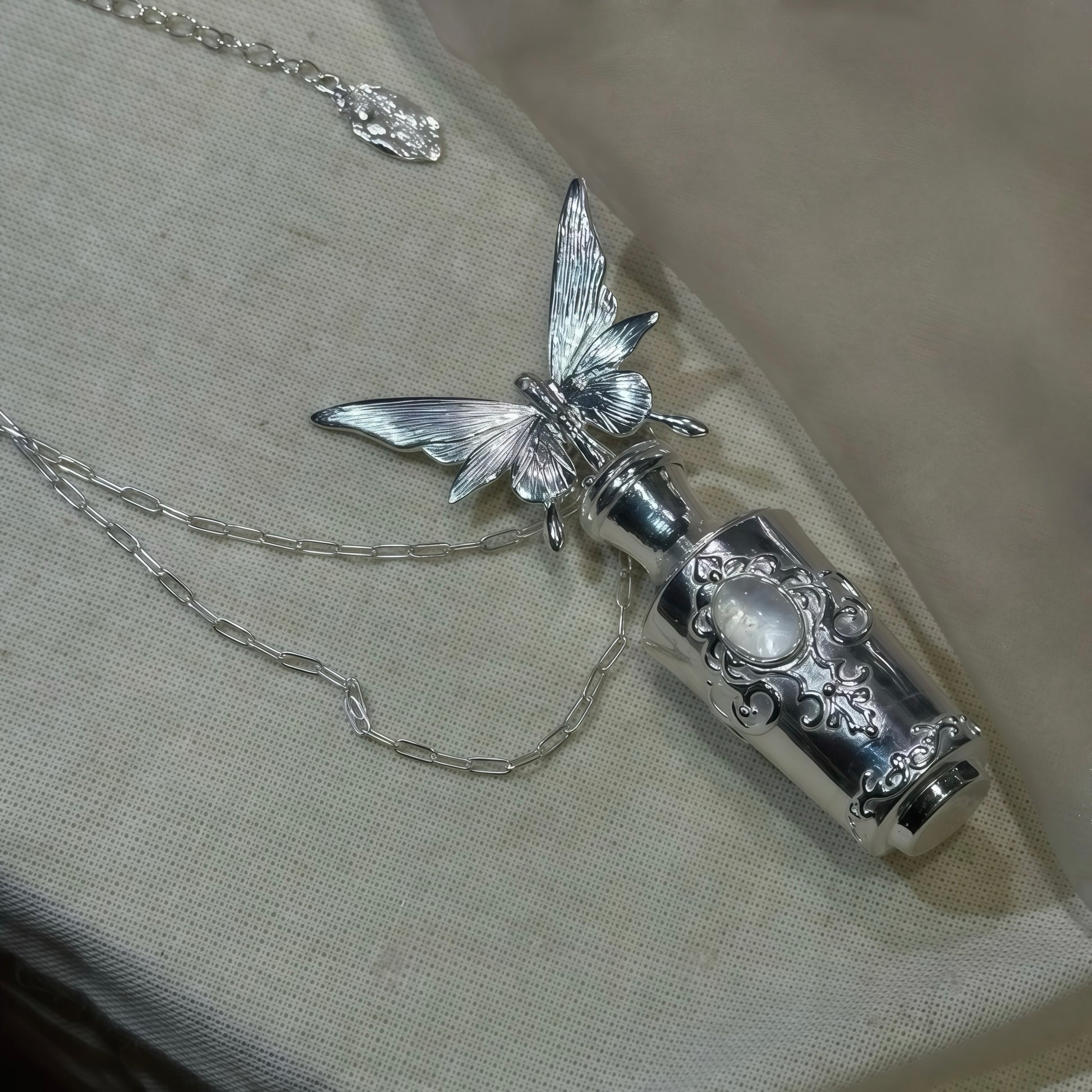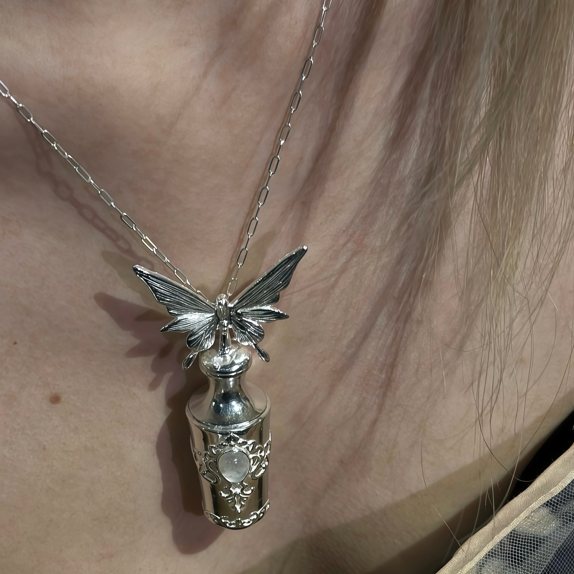 - Pendant: Butterfly and ornamental vial design